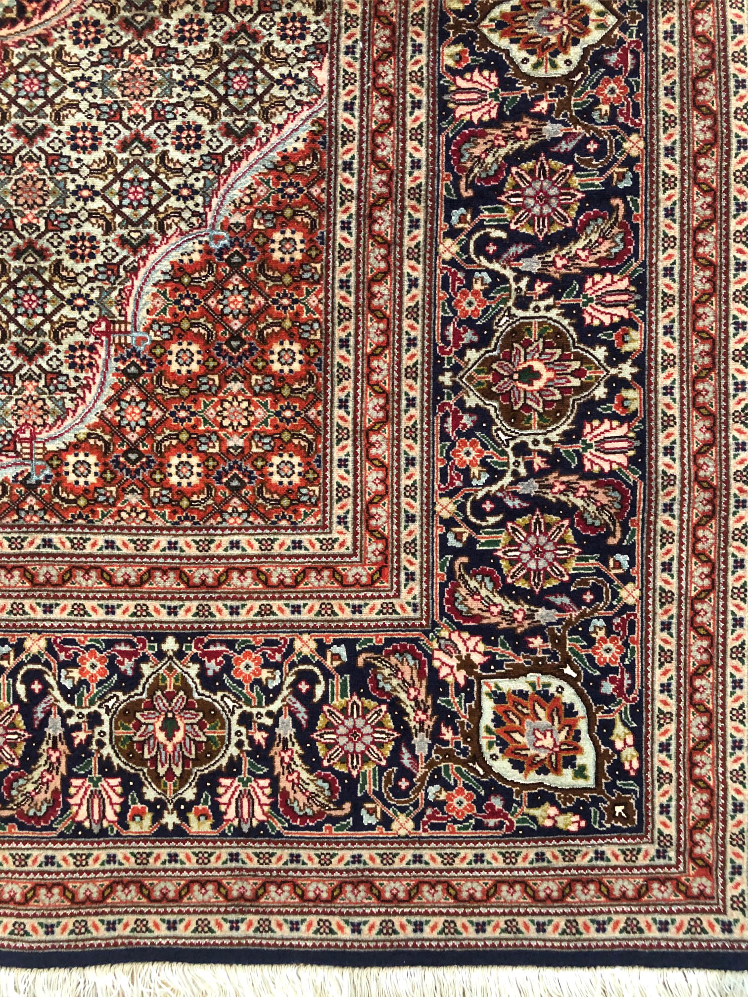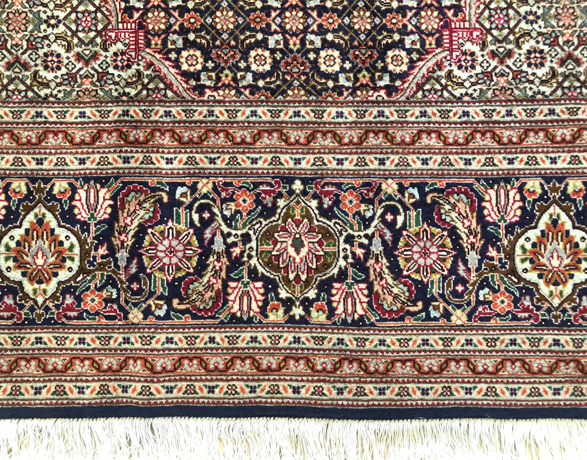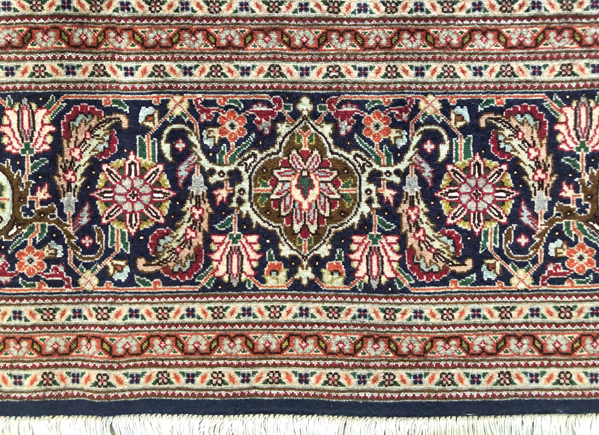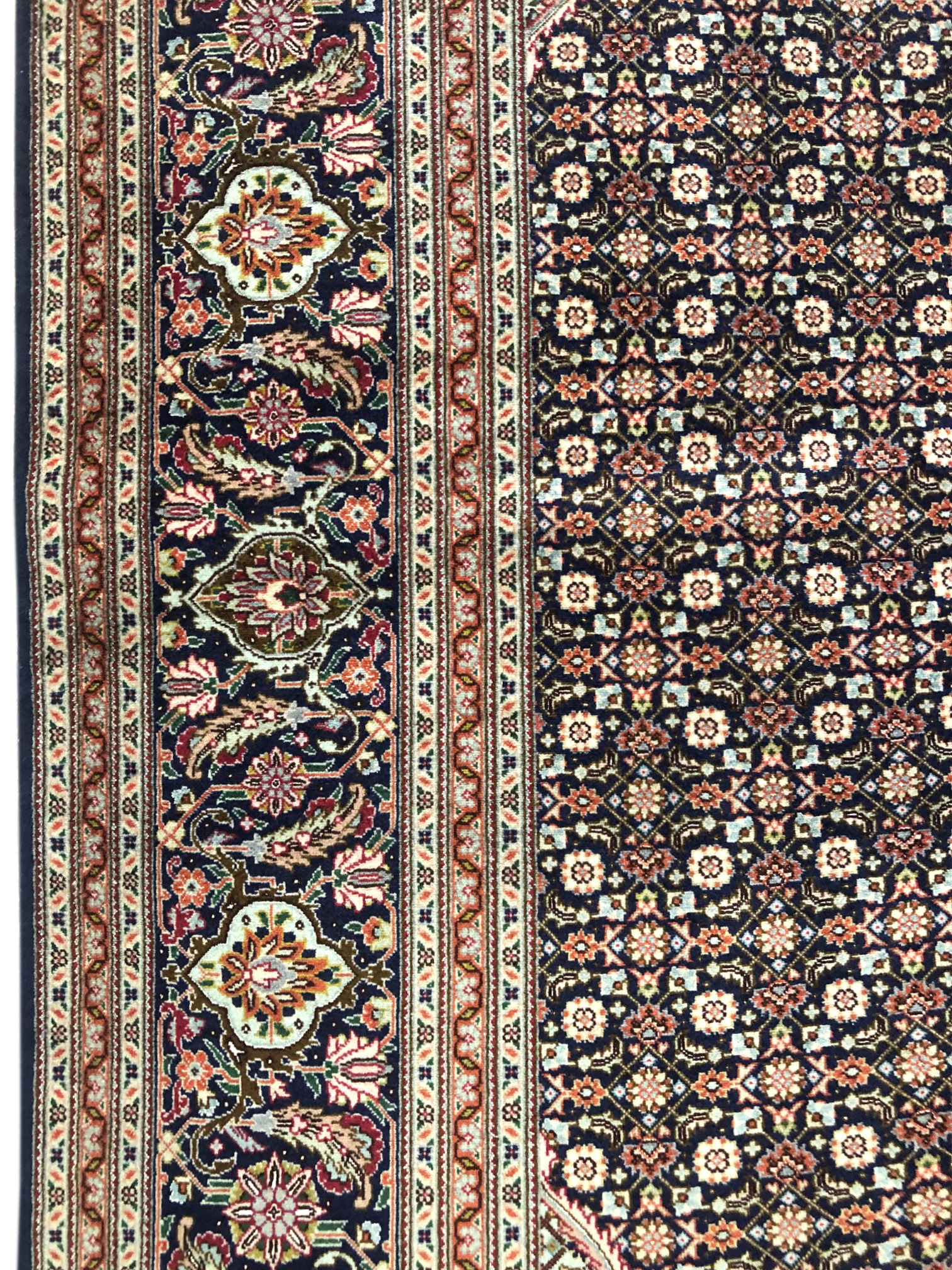Size: 6.6x9.7 / Pile: Wool & Silk / Foundation: Cotton / Design: Fish Design(Mahi) / Base Color: Dark Blue / Border Color: Dark Blue